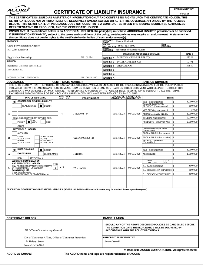 Certificate Of Insurance